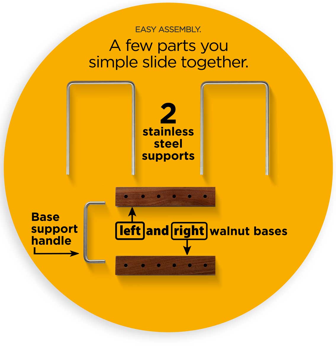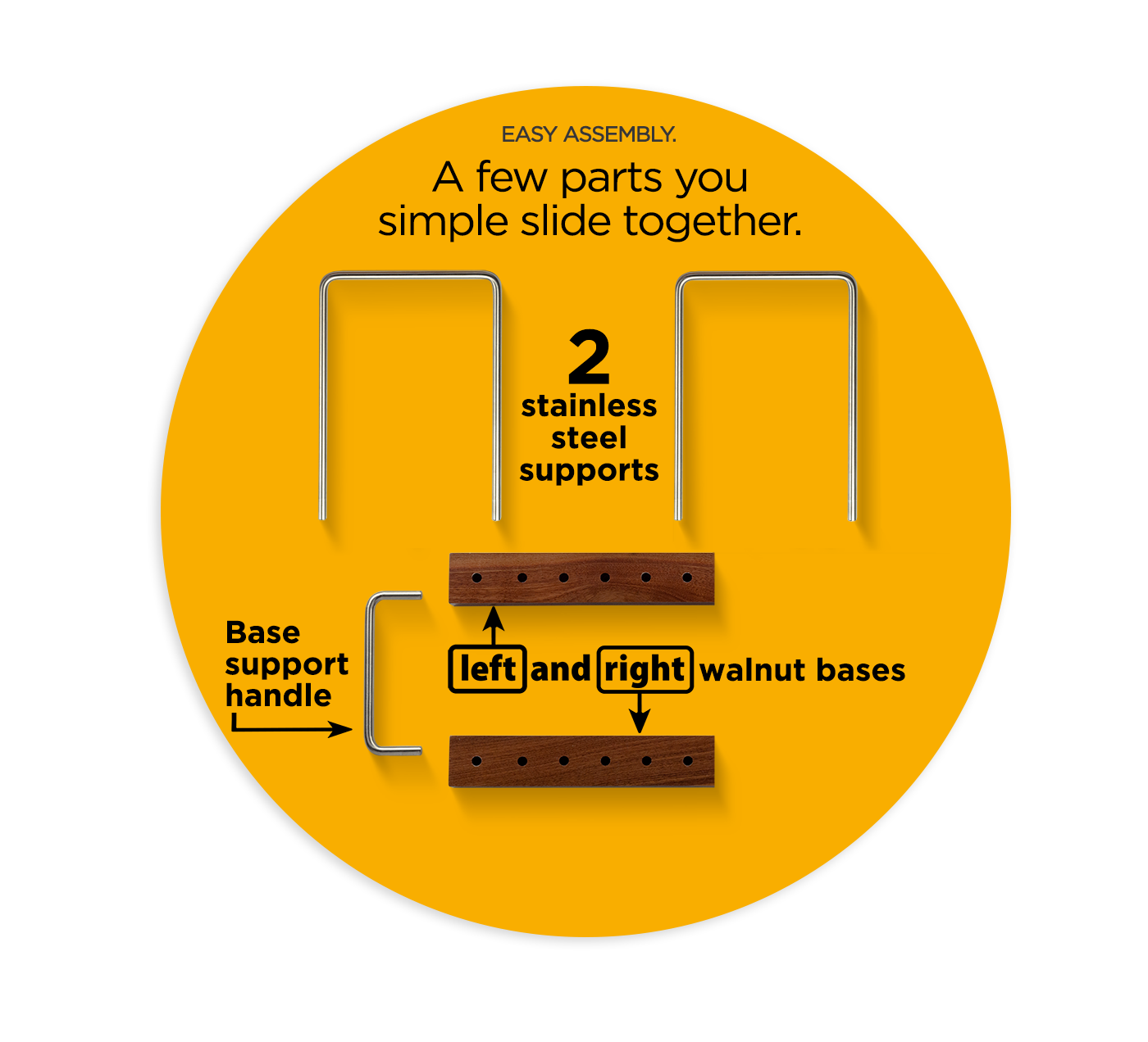 The Mini Collection Holder is made with a level of quality you’d expect from a finely crafted classical guitar – not a record stand. Made from solid FAS-Grade American black walnut. The same prized hardwood used for fine furniture & cabinetry. Paired with high-grade stainless steel supports. Each Record Collection Holder is hand-crafted & polished to perfection.