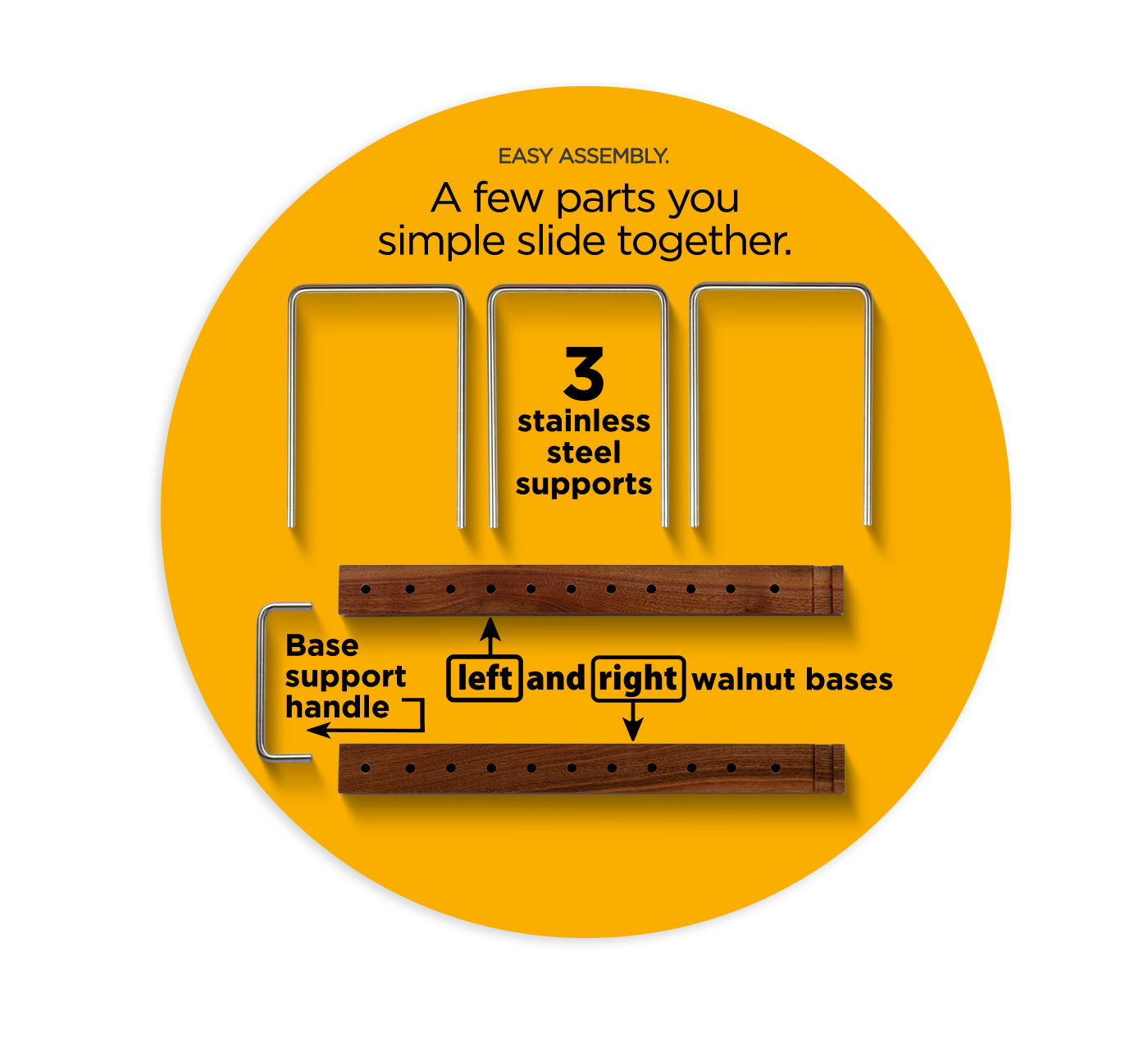 The Record Collection Holder is made with a level of quality you’d expect from a finely crafted classical guitar – not a record stand. Made from solid FAS-Grade American black walnut. The same prized hardwood used for fine furniture & cabinetry. Paired with high-grade stainless steel supports. Each Record Collection Holder is hand-crafted & polished to perfection.